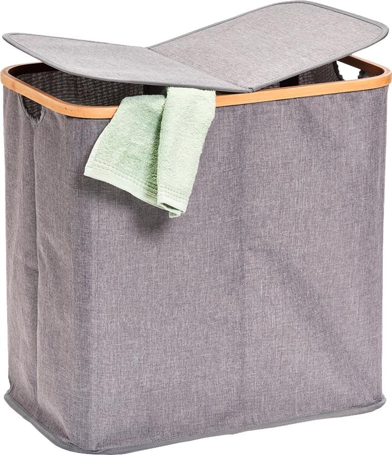 Der Wäschesammler von Zeller punktet mit seinem praktischen 2-Fach-System. Auf diese Weise lässt sich die Schmutzkleidung direkt trennen, sodass später beim Waschgang Zeit gespart wird. Der Deckel sorgt dabei stets für ein ordentliches Gesamtbild. Mithilfe der seitlichen Griffe lässt er sich leicht transportieren. Zudem ist der Wäschesortierer im dekorativen Design gehalten, wobei der Bambus ansprechend mit dem Stoff harmoniert. Bei Nichtgebrauch kann er einfach zusammengefaltet und platzsparend verstaut werden. Ideal für alle, die Zeit bei der Hausarbeit sparen wollen: der Zeller Wäschesammler mit praktischem 2-Fach-System.