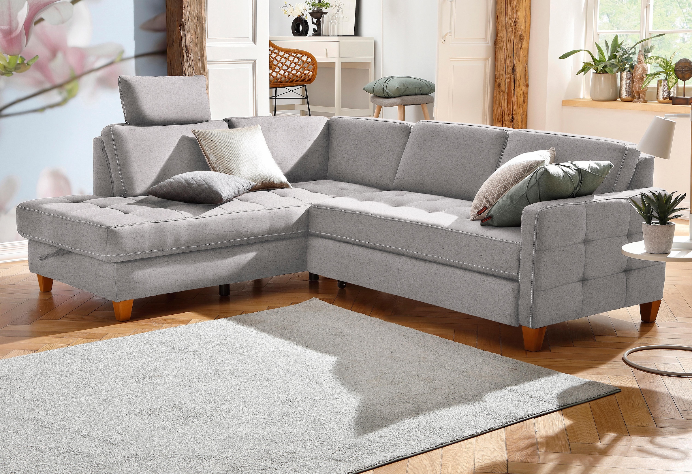 DOMO collection Ecksofa »Florentina zeitlos und elegant, Sitznähte als Designelement, L-Form« wahlweise mit Bettfunktion, mit Kontrastnaht, Komfortsitzhöhe 47cm