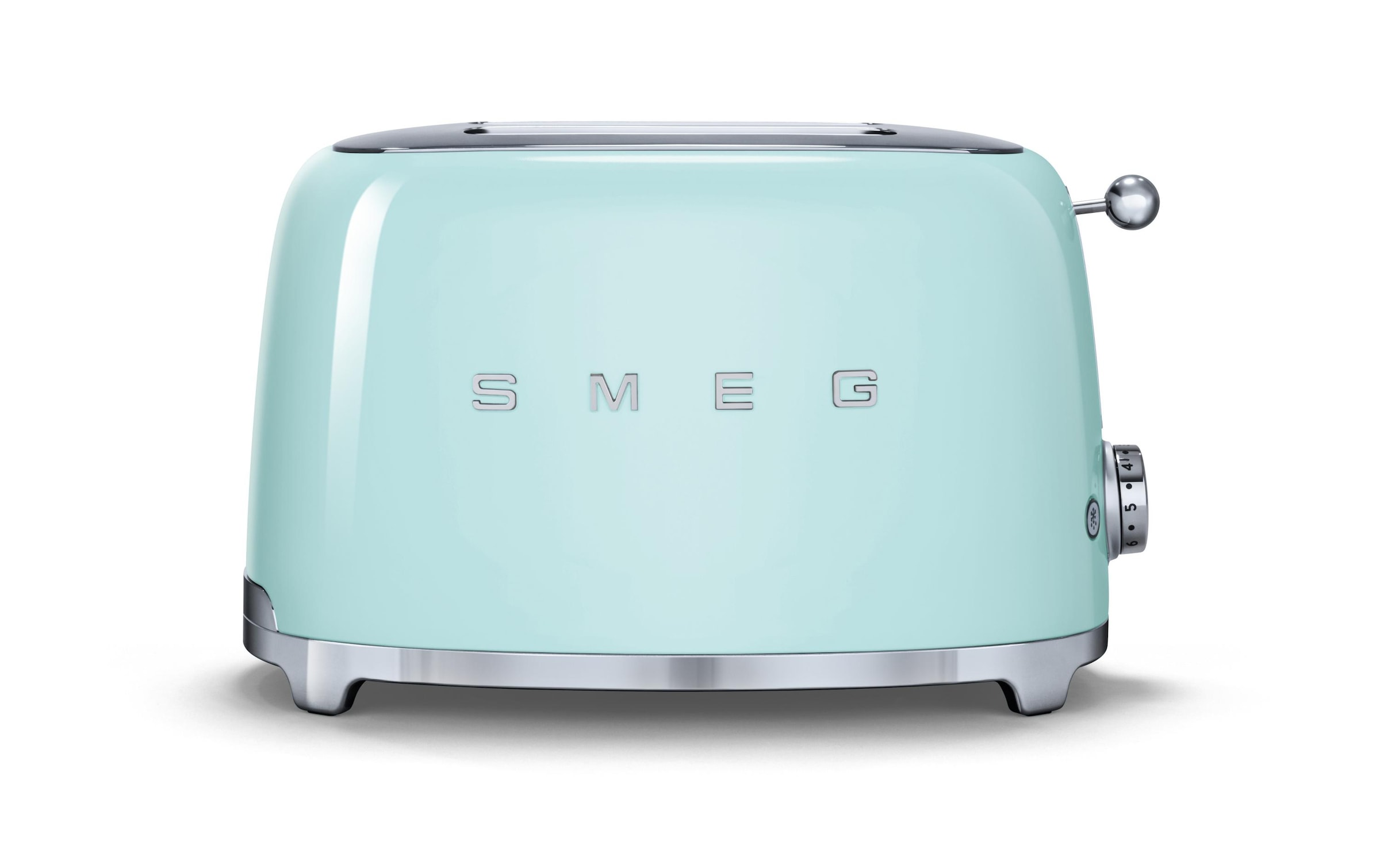 Klassischer Toaster, Grün Der Toaster 50's im Retro Style von SMEG hat eine Leistung von 950 Watt und ist nicht nur ein stylisher Hingucker in Ihrer Küche, sondern zudem ein praktischer Haushaltshelfer, um getoastete Köstlichkeiten zuzubereiten, Neue Funktionen in klassischem Gehäuse Der Toaster ist mit einem lackierten Gehäuse aus Edelstahl ausgestattet und verfügt über einen Kugelgriff aus Edelstahl, um den Toastschlitten nach unten zu bewegen, Über den beleuchteten Bedienknopf stellen Sie die sechs Röststufen bequem ein, Zudem sind drei Automatikprogramme (Aufwärmen, Auftauen und Bagel) integriert, Über den beleuchteten Drucktaster können Sie die Auftau-/Bagel-Funktion bequem bedienen, Die Toastschlitze sind extra breit gestaltet, sodass auch dickere Scheiben Platz haben, Eingelegte Toastscheiben werden automatisch zentriert, Nach der Beendigung der Röstzeit wirft das Gerät die Scheiben automatisch aus, Sicher und sauber Für einen sicheren Stand des Toasters sorgen die rutschfesten Gummifüsse, Die herausnehmbare Krümelschublade aus Edelstahl stellt zudem eine einfache Reinigung sicher, Wird der Toaster einmal nicht verwendet, können Sie das Netzkabel bequem in der Aufnahme aus verchromtem Kunststoff an der Unterseite verstauen, Müde von herkömmlichem Toastbrot? Mit der integrierten Bagelfunktion oder dem Brötchenaufsatz können Sie Ihre Brötchen und Gebäcke, welche nicht in den Toastschlitz passen, ebenfalls aufwärmen und toasten, Somit erhalten Sie eine Abwechslung zum gewohnten Toastbrot, Vom Tiefkühler direkt in den Toaster Tauen Sie Ihren Toast kurz vor dem Essen mit der Auftaufunktion auf, Ersparen Sie sich damit langes Warten, seien Sie auf der sicheren Seite und geniessen Sie schmackhaftes Toastbrot, Bewahren Sie Ihren Toast im Tiefkühler auf und nehmen Sie nur die benötigte Menge heraus,