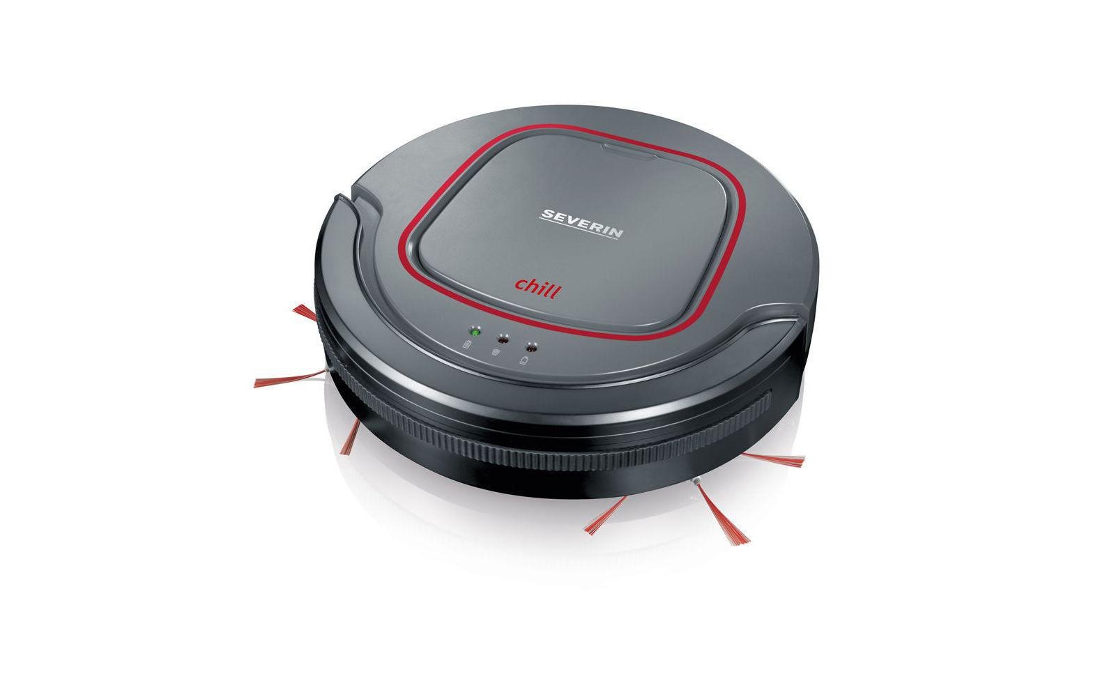Der Saugroboter Chill von Severin ist speziell auf den Einsatz innerhalb von Wohnräumen abgestimmt, Mit seiner flachen Bauweise gelangt das Gerät an schwer zugängliche Stellen wie beispielsweise unter Möbel, Die langen Rundbürsten erreichen auch Ecken und Kanten zuverlässig, Das Reinigungsprogramm des Roboters lässt sich je nach Verschmutzungsgrad des Bodens in drei Stufen einstellen und ist sowohl für Teppich- als auch für Hartböden geeignet, Mithilfe der modernen Sensortechnik werden Treppenstufen erkannt und Abstürze verhindert,