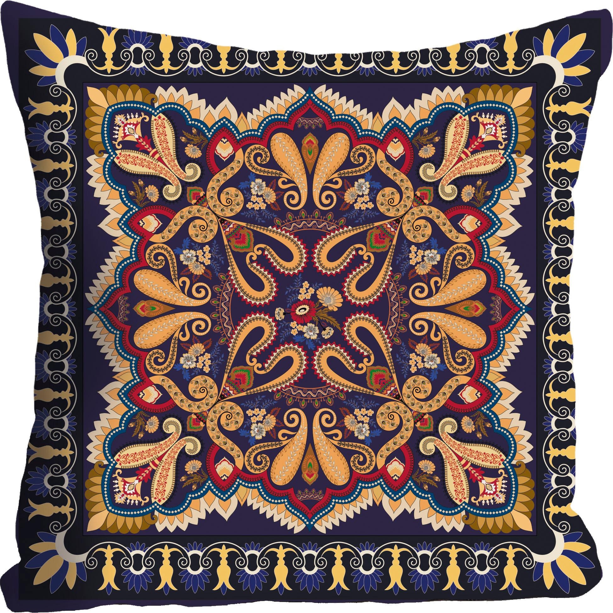 Mit detailreichem Design überzeugt die dekorative Kissenhülle »Ornament«. Sie bereichert das Zuhause um einen geschmackvollen Akzent. Besonders wirkungsvoll kommt sie im Wohnzimmer auf der Couchgarnitur, dem Lieblingssessel und weiteren beliebigen Sitzgelegenheiten zur Geltung. Optisch zeichnet sich die Dekokissenhülle durch die farbenfrohe und kontrastreiche Gestaltung aus. Der Druck ist frei von Allergenen. In den Bezug eingenäht ist ein praktischer Reissverschluss, wodurch das unkomplizierte Be- und Abziehen unterstützt wird. Der Dekokissenbezug ist gemäss STANDARD 100 by OEKO-TEX® zertifiziert. Bei Bedarf kann er gewaschen werden. Ein Eyecatcher im orientalischen Stil: die dekorative Kissenhülle »Ornament«. Mit diesem Produkt werten Sie Ihr Zuhause stilvoll auf.