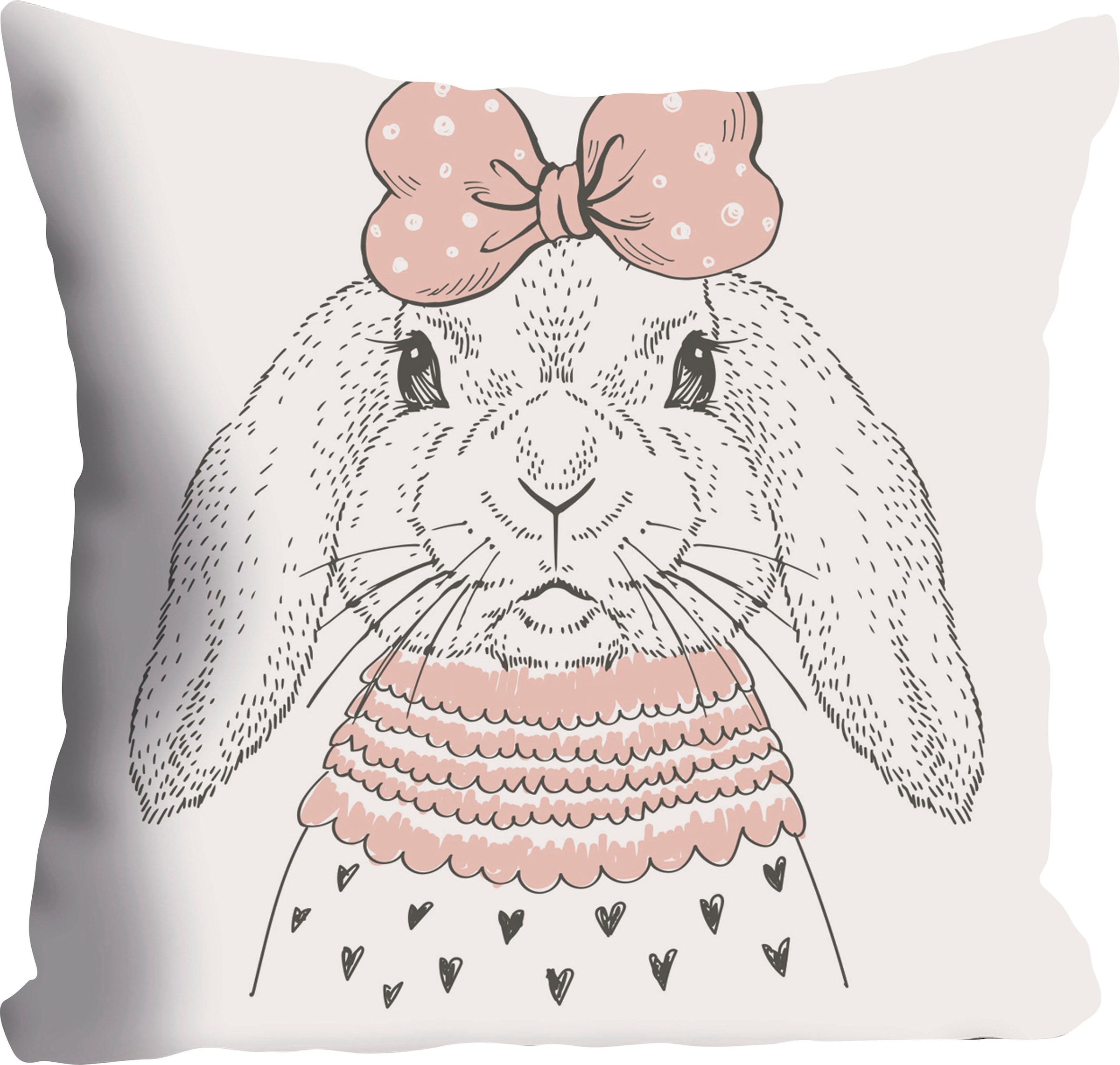 Ein originelles Wohnaccessoire in verschiedenen Räumen ist die Kissenhülle »Hase« im niedlichen Design. Als Motiv ist ein Häschen mit putziger Verkleidung und einer hübschen Schleife auf dem Kopf abgebildet. Mit seinem skandinavischen Stil harmoniert der Bezug mit modernen Einrichtungen. Ausgestattet mit einem praktischen Reissverschluss, ermöglicht er ein zeitsparendes Auf- und Abziehen. Hergestellt wird die Dekokissenhülle aus einem hautfreundlichen und weichen Material. Praktisch: Bei Bedarf lässt sie sich waschen. Ein schöner Blickfang auf dem Sofa, Sessel und Bett ist die Kissenhülle »Hase« im niedlichen Design.