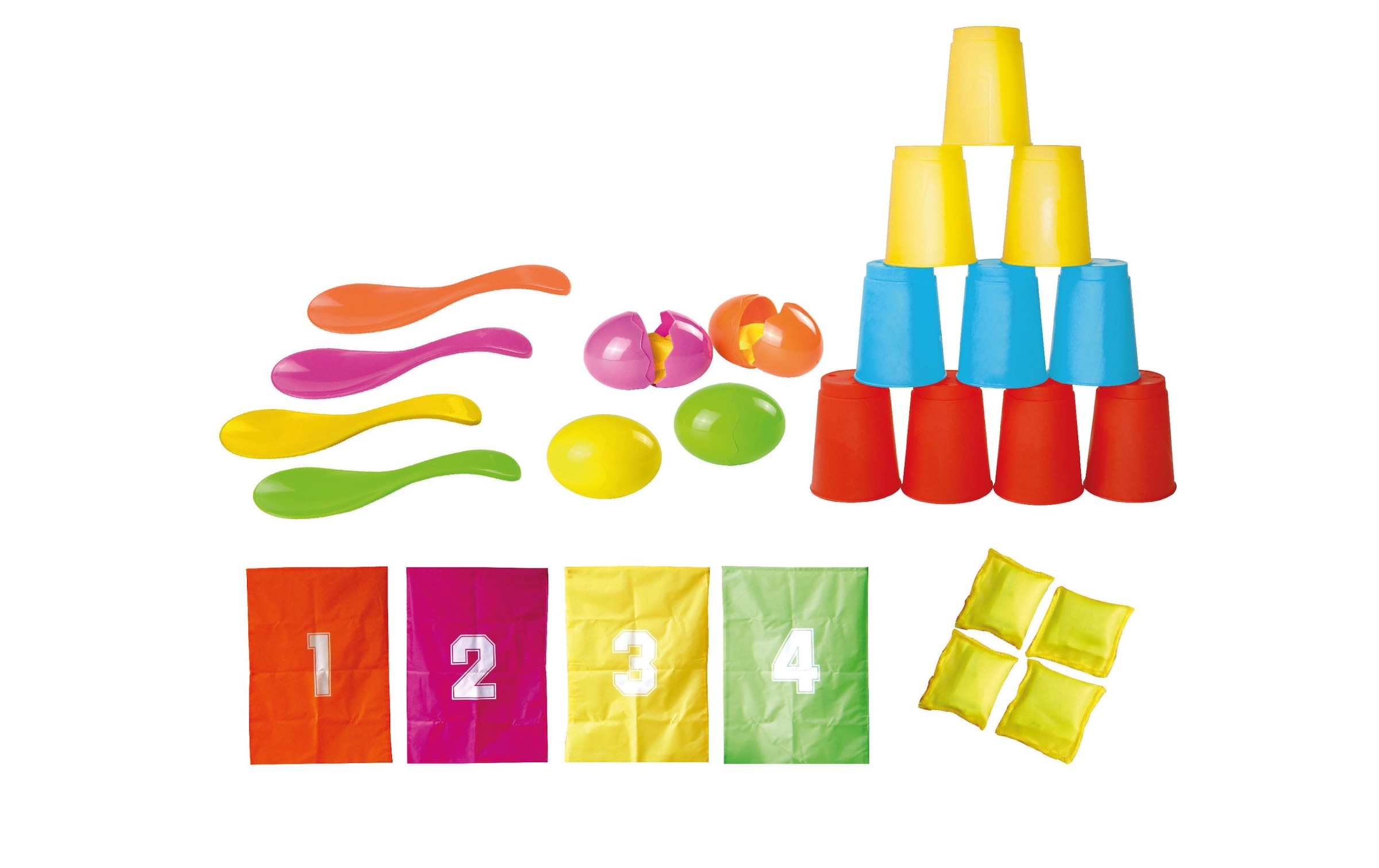 - Partyset für Kinderfeste und Kindergeburtstage mit Dosenwerfen, Eierlaufen und Sackhüpfen