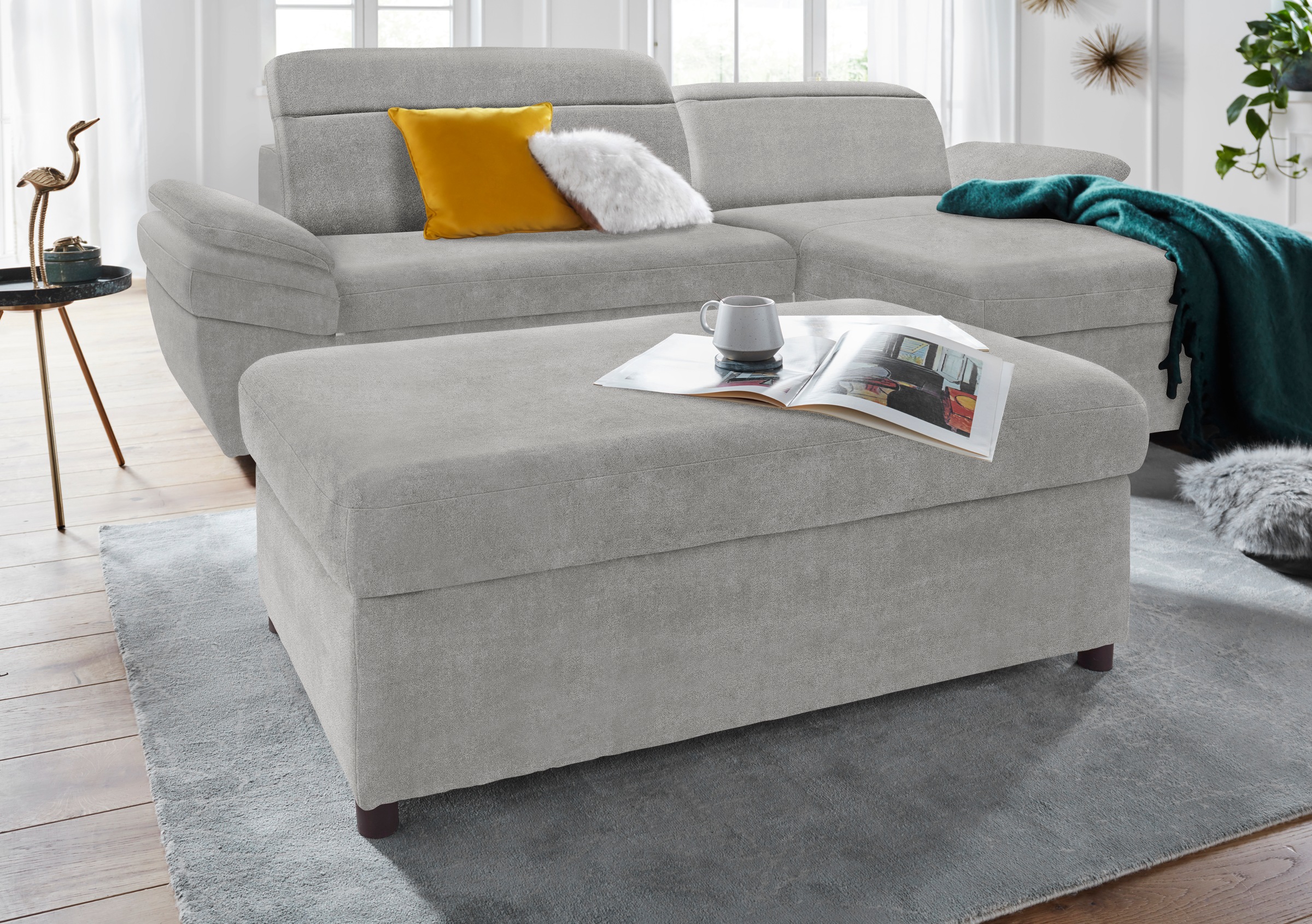 Attraktiv und praktisch zugleich ist der Hocker mit Stauraum aus der Kollektion von exxpo - sofa fashion. Geradlinig und mit ansprechendem Bezugsstoff designt, bereichert er das Zuhause. Erhältlich ist das Sitzmöbel in mehreren Bezugsqualitäten. Für den gemütlichen Sitzkomfort sorgt die Wellenunterfederung im Zusammenspiel mit der atmungsaktiven Schaumpolsterung. Unter der abnehmbaren Sitzfläche bietet der Sitzhocker ein nützliches Stauraumfach, in dem verschiedene Dinge des Alltags ihren ordentlichen Platz erhalten. Stellbar ist der Polsterhocker frei im Raum, als Teil der Couchgarnitur oder vor dem Lieblingssessel zum Ausruhen müder Beine. Er ist hochwertig verarbeitet aus FSC®-zertifiziertem Holzwerkstoff.