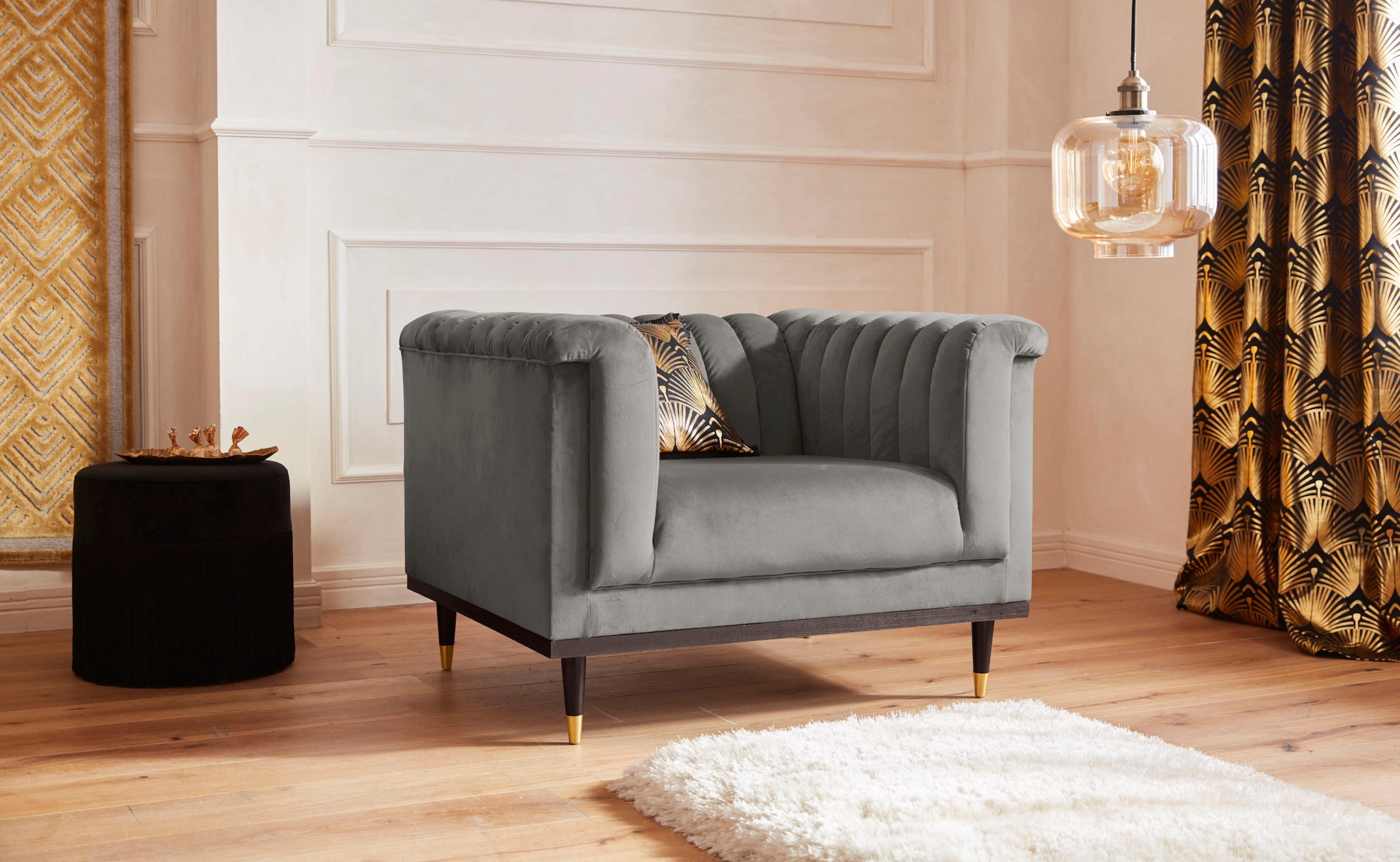 Home affaire Sessel »Chamby« mit Holzrahmen unten und Steppung im Lehnenbereich