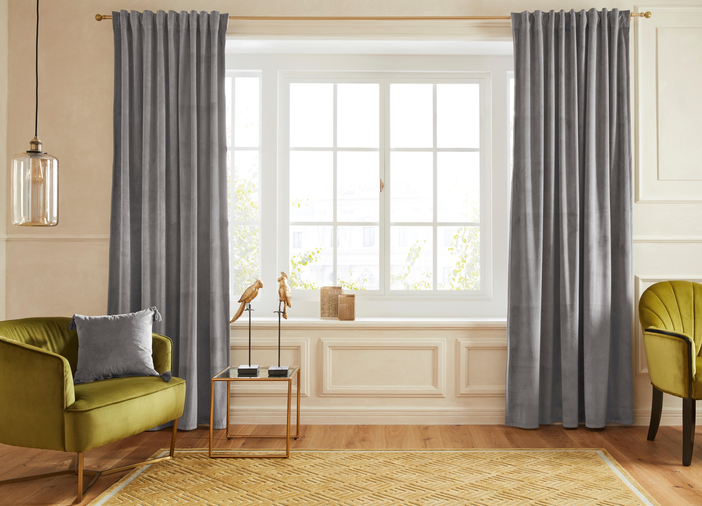 Blickdichter Samtvorhang in eleganten Uni-Farben.