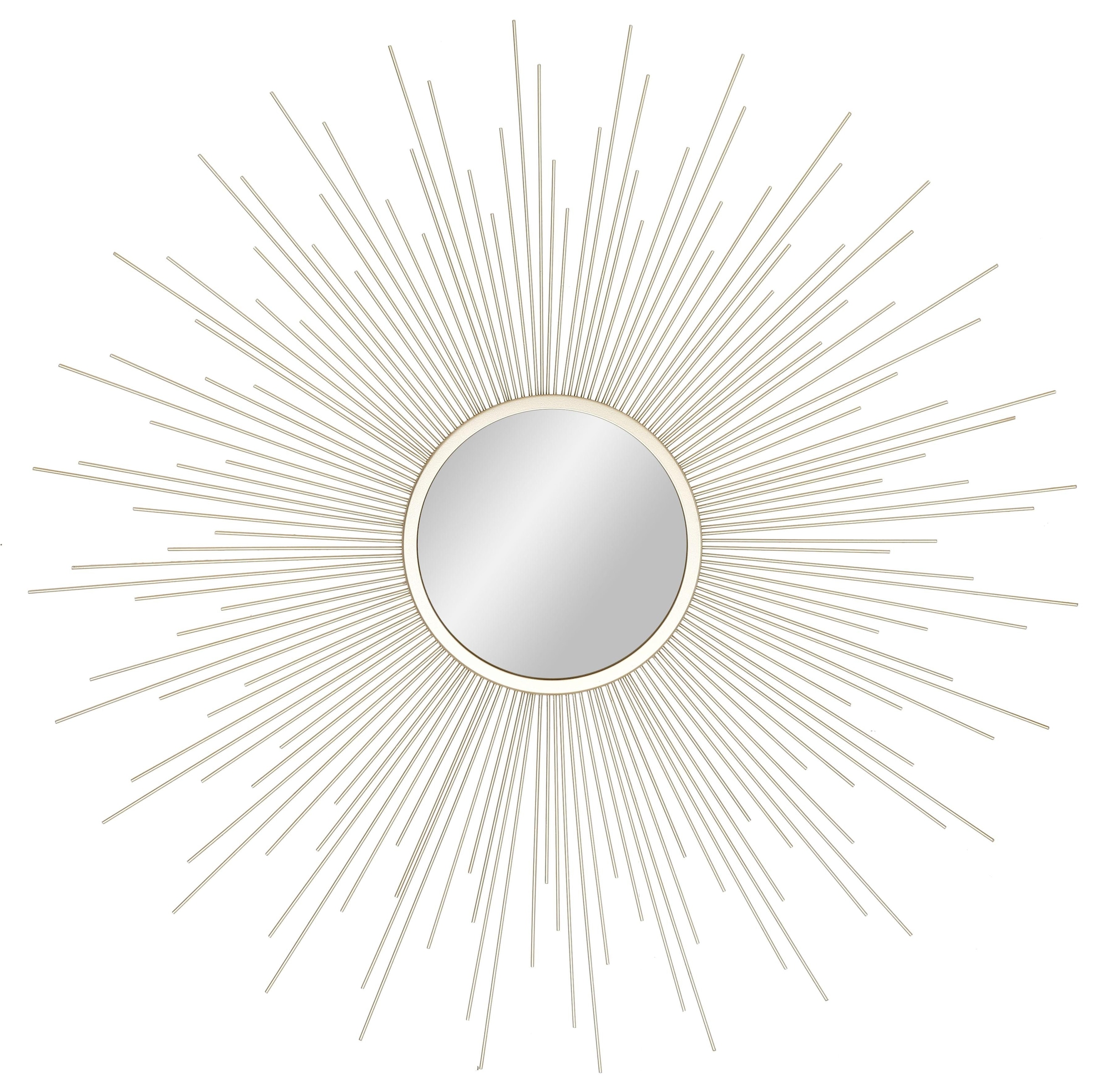 Mit diesem Wandspiegel kommt der Sonnenschein in die Wohnung. Die Form und die Farbe des Spiegels erinnern an die Sonne. Die unterschiedlich langen Stäbe, die die runde Spiegelfläche umgeben, erwecken diese Assoziation. Ein dekorativer Akzent für jedes Zimmer. Ob Badezimmer, Schlafzimmer oder Flur: Der dekorative Wandspiegel ist ein reizvolles Deko-Objekt.