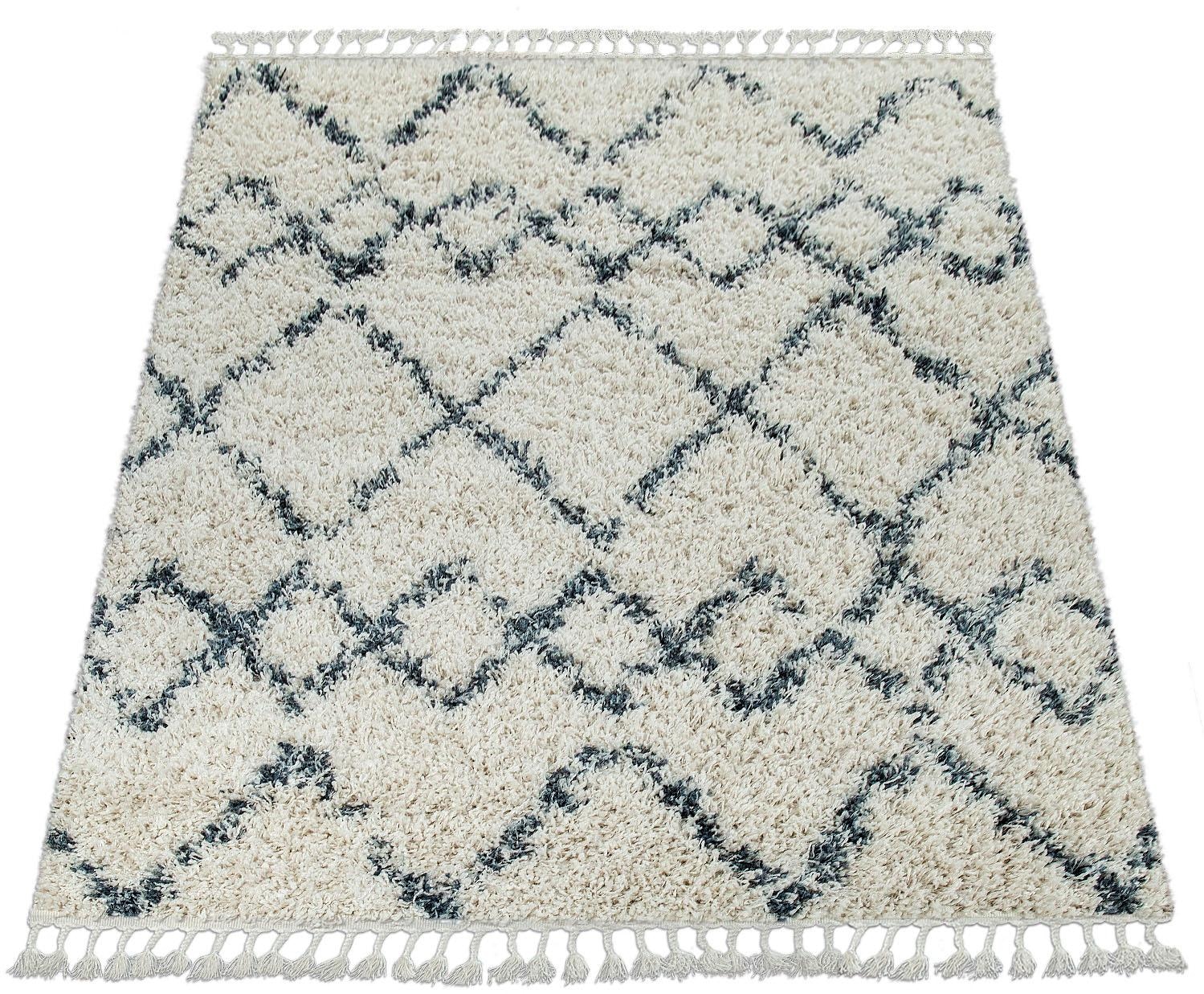 Paco Home Hochflor-Teppich »Nador 757« rechteckig 54 mm Höhe weicher Shaggy mit Rauten Design und Fransen
