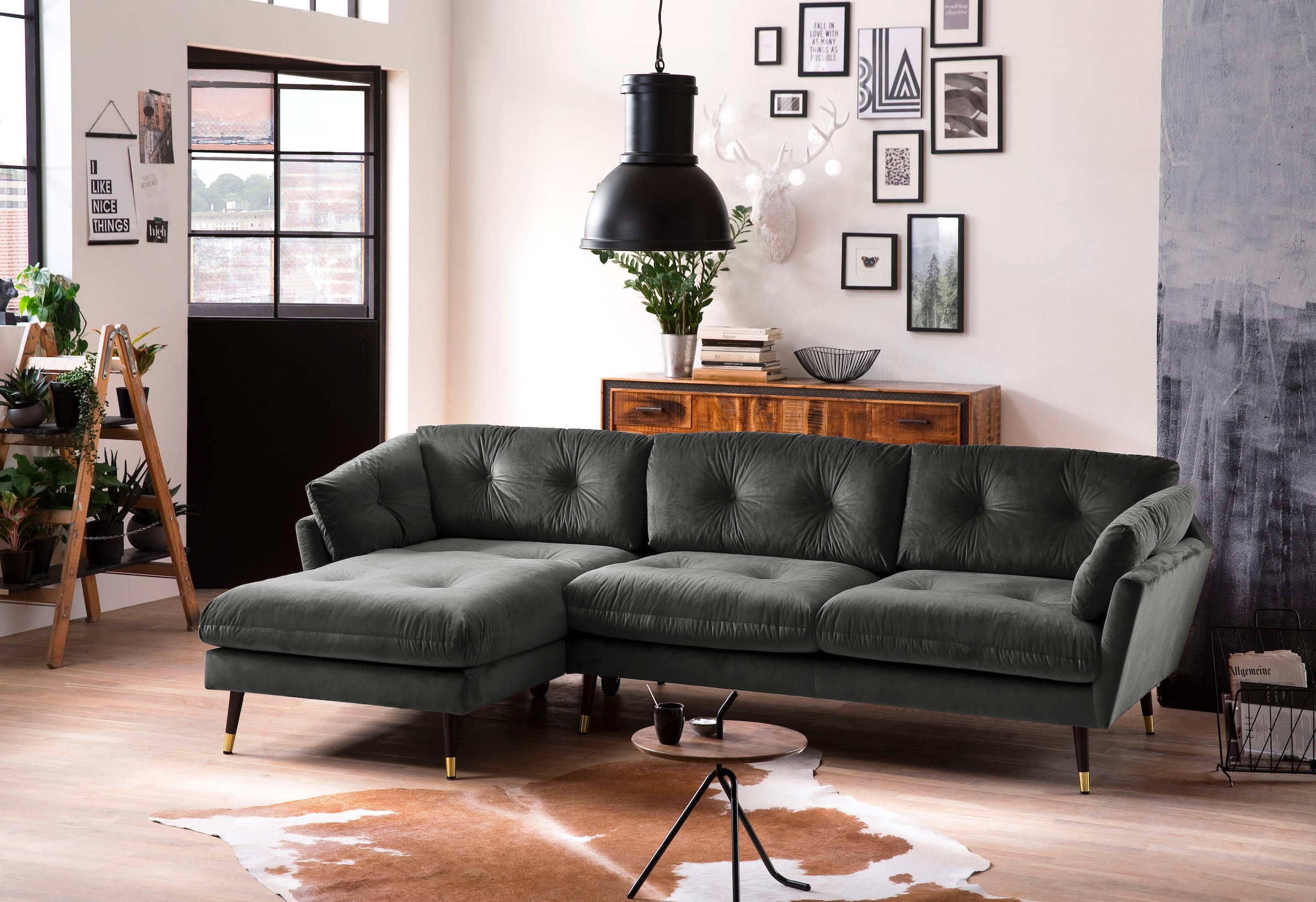 Trends by HG Ecksofa »Japan L-Form« mit Fuss in Holz-Metallkombination, Recamiere rechts oder links