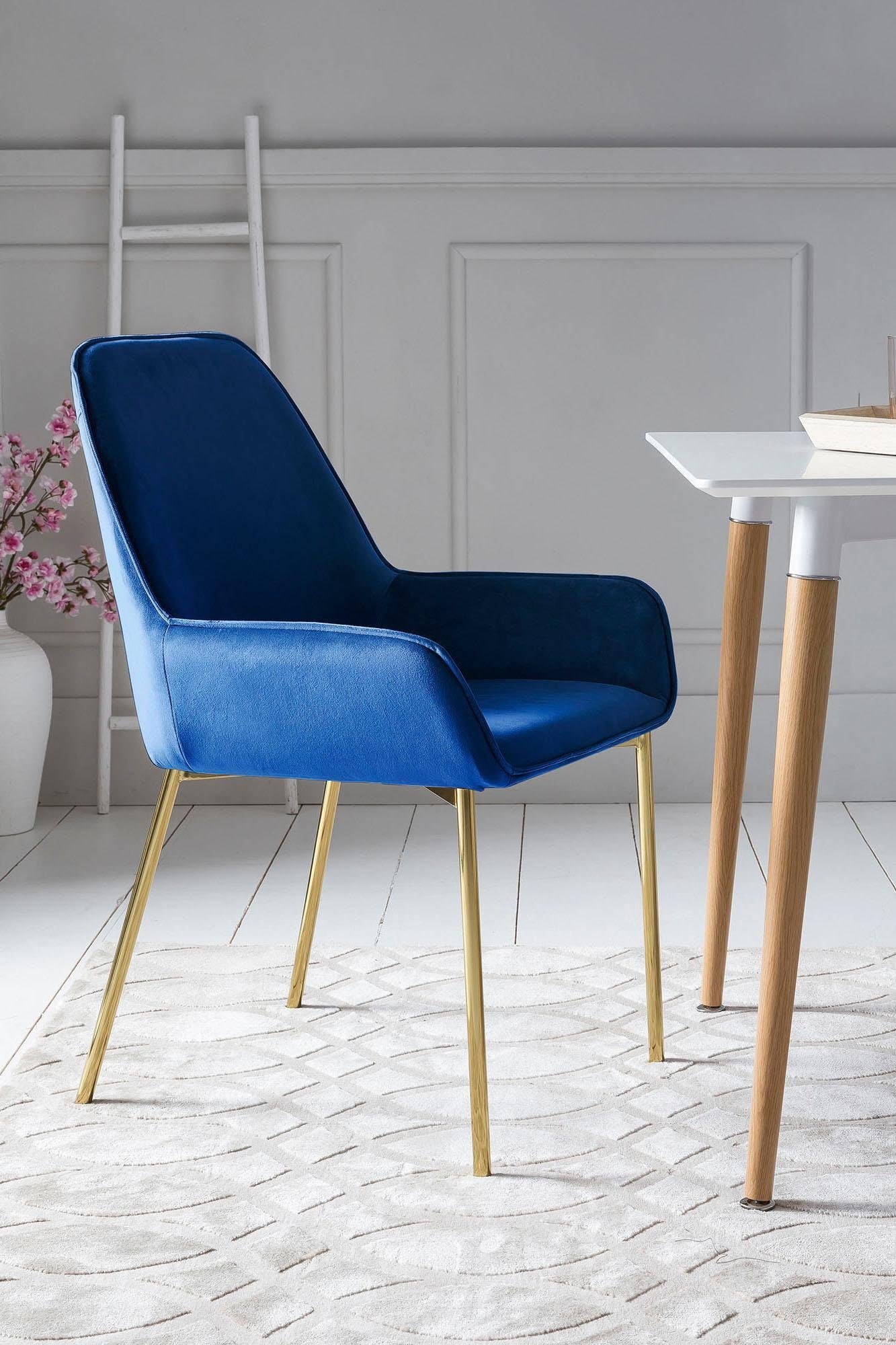 SalesFever Armlehnstuhl »Eleganter Esszimmerstuhl« (Set) 2 Stk.mit modernem, messingfarbenem Gestell