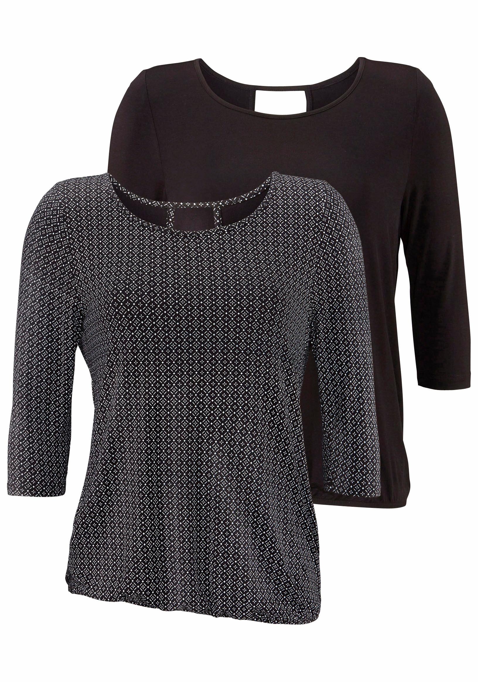 LASCANA 3/4-Arm-Shirt »mit modischem Cut-out« 2er-Pack, aus weichem Viskose-Stretch