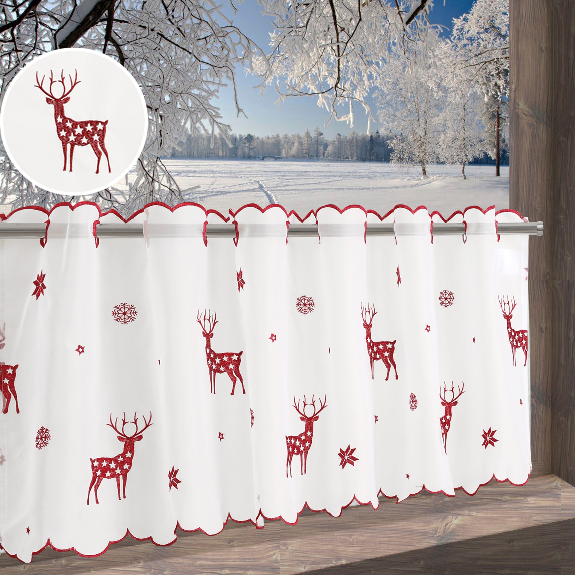 - Scheibengardine »Elch« Durchzuglöcher 1 Stk. tlg. Mit Rentieren, Sternen und...GOODproductAktueller Preisab 12.90 CHF