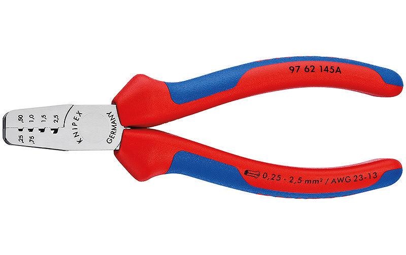 - Mit Crimpzange für Aderendhülsen KNIPEX Twistor16® 97 53 18 und automatischer Abisolierzange KNIPEX PreciStrip16 12 52 195.