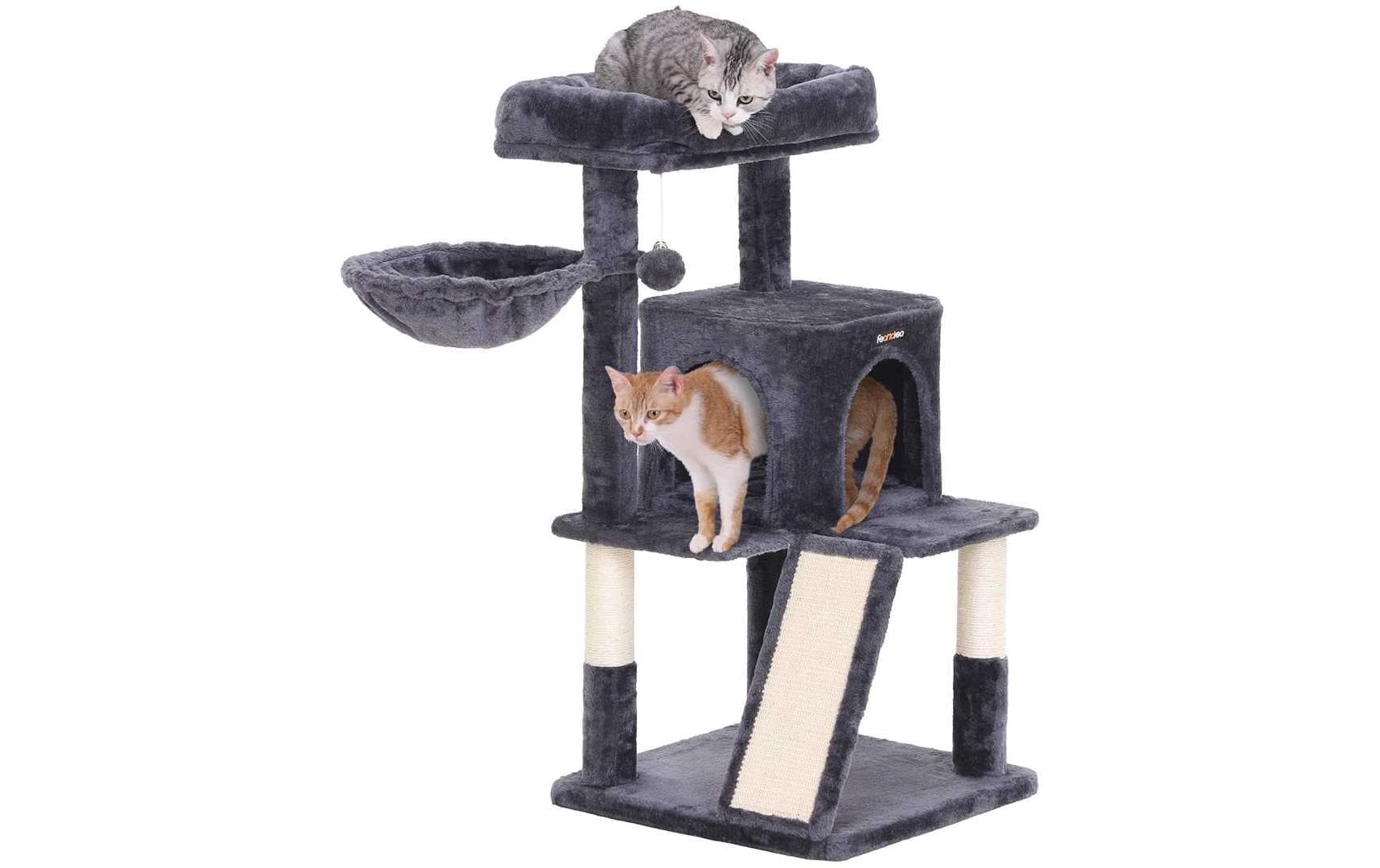 - Langlebige Kratzpappe und Sisalstämme zur Krallenpflege und zum Klettern