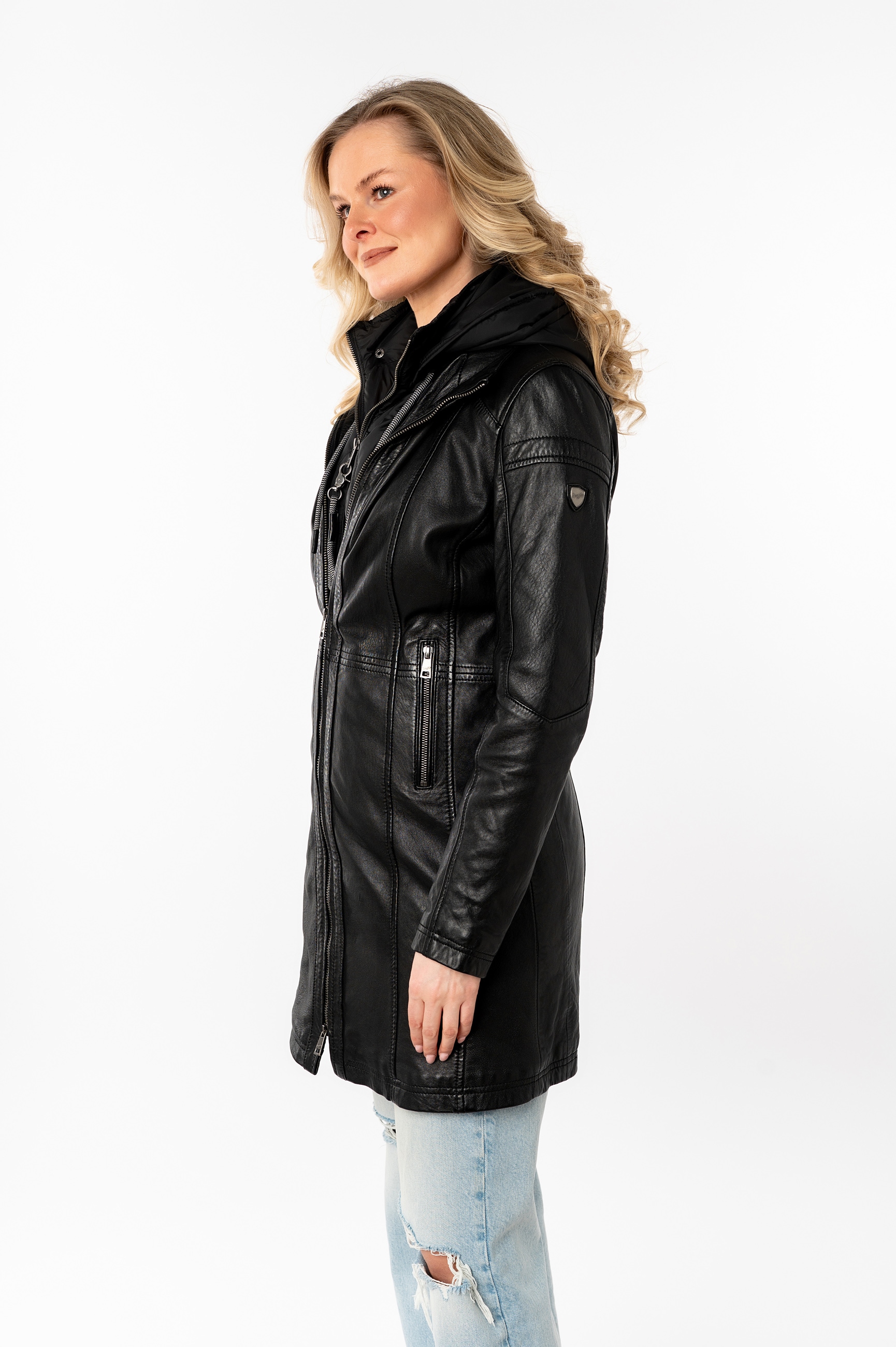 - Ledermantel »Bente« 2-in-1-Lederjacke mit abnehmbarem Kapuzen-Inlay aus JerseyqualitätMauritiusAktueller Preis139.00 CHF