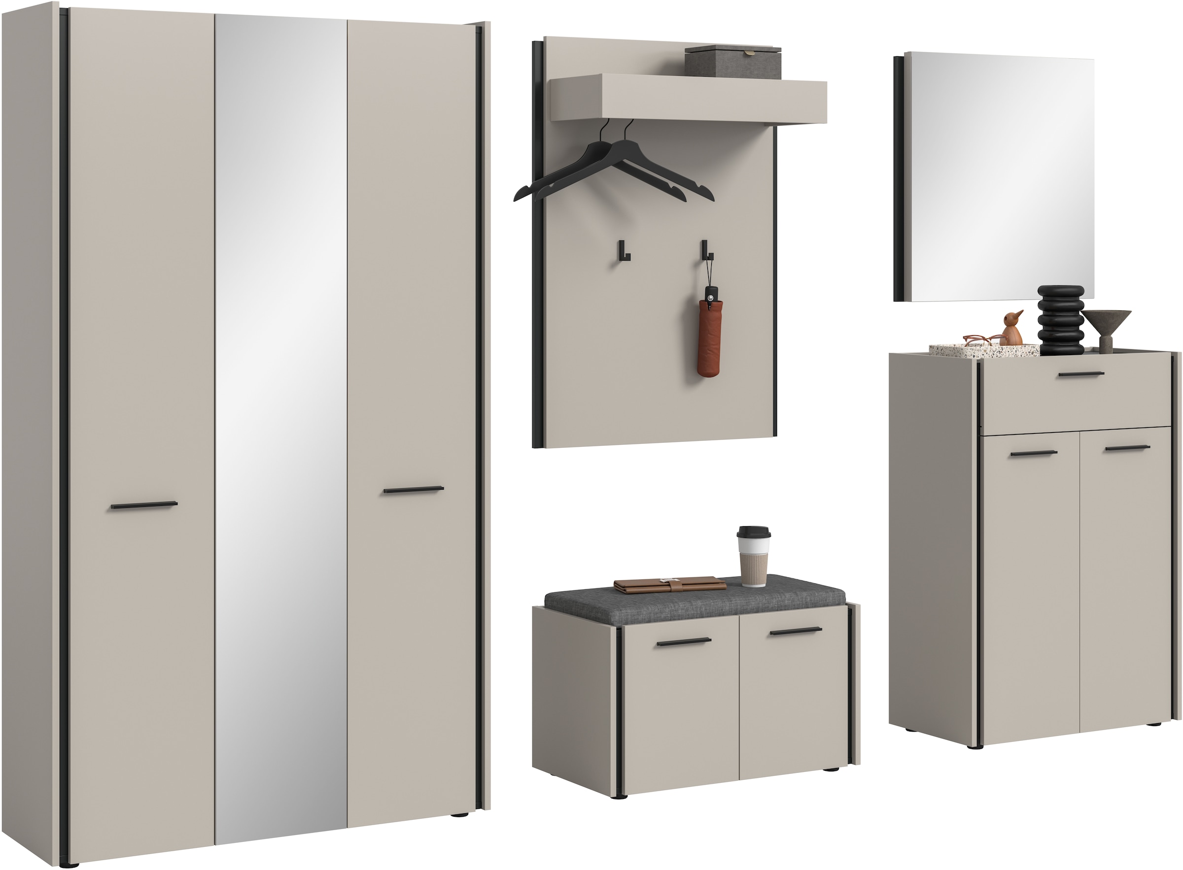 - Garderoben-Set »SIENA, Breite 272 cm, 6-tlg., individuell stellbar, inkl. Sitzkissen«...Home affaireAktueller Preis1279.00 CHF