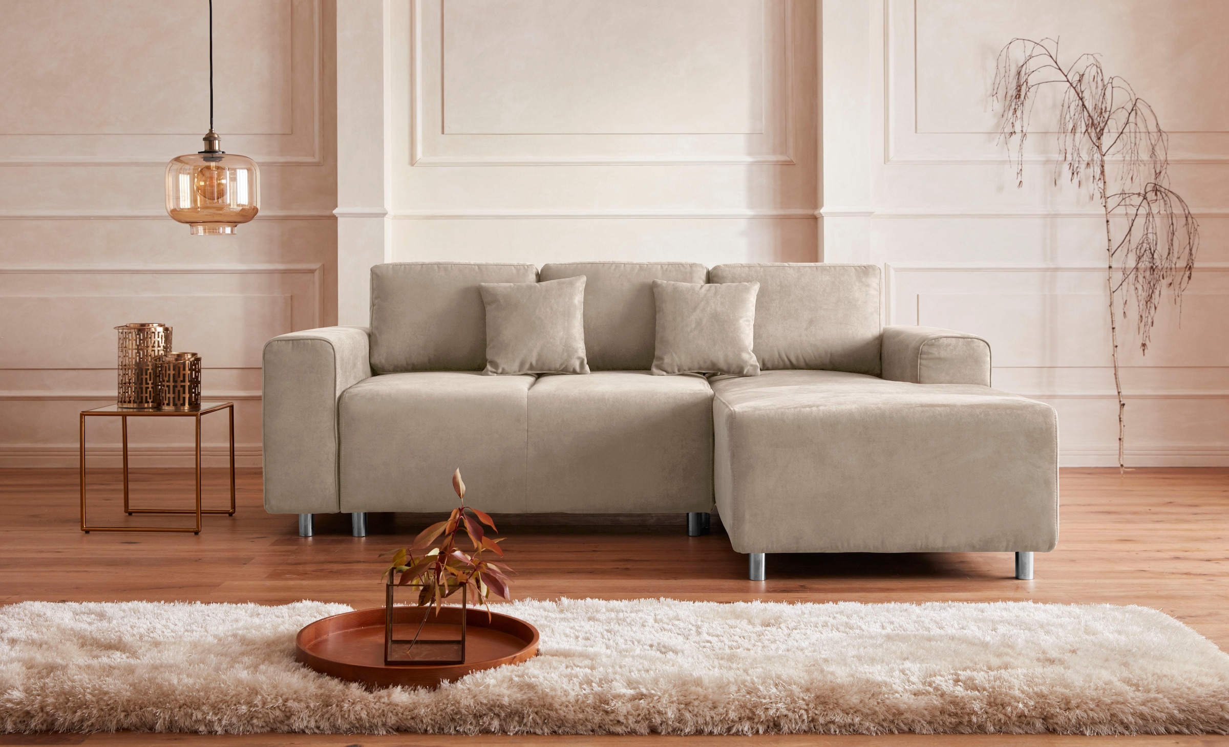 - INOSIGNEcksofa »AGNIA L-Form B/T/H: 244/244/71 cm« incl. Zierkissen, gleichschenklig, auch...