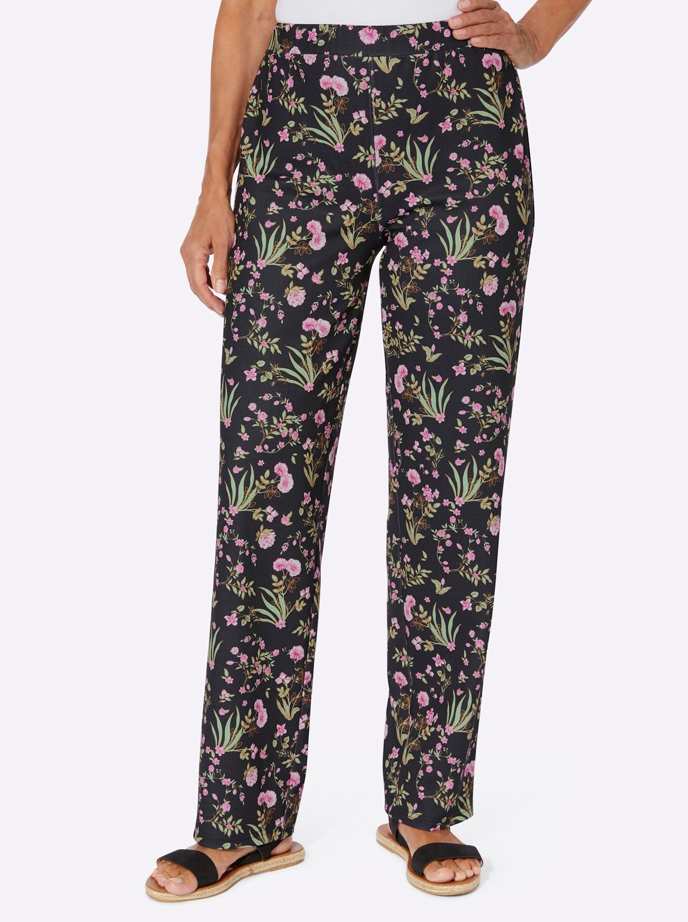 - VivanceJerseyhose mit grossem Blumendruck, Schlupfhose aus Jersey