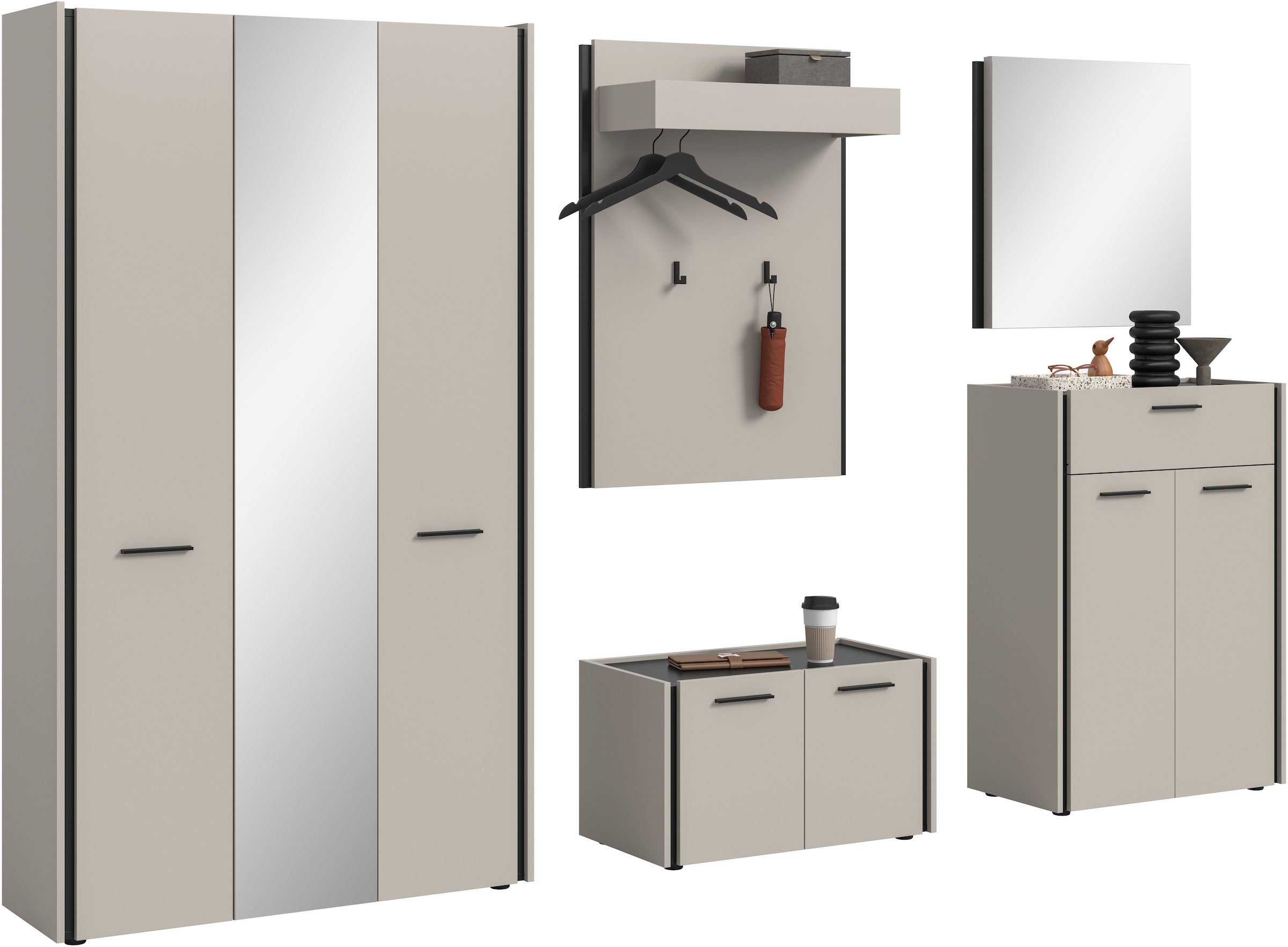 Mit einem Garderoben-Set erhalten Sie alles, was Sie für die Aufbewahrung von Jacken, Mänteln und Co. brauchen. Sie sparen Zeit bei der Auswahl Ihrer Garderobe im Eingangsbereich und geniessen einen harmonischen Look.